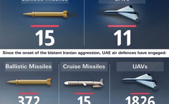 15:09 – ПВО ОАЭ перехватили 11 баллистических ракет …