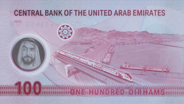 Центральный банк ОАЭ ввел в обращение новую банкноту номиналом 100 дирхамов (27 долларов США). На лицевой стороне банкноты, изготовленной из полимера, изображен национальный форт Умм-аль-Кувейн, а на оборотной – железнодорожная ветка Etihad Rail рядом с портом Фуджейра.