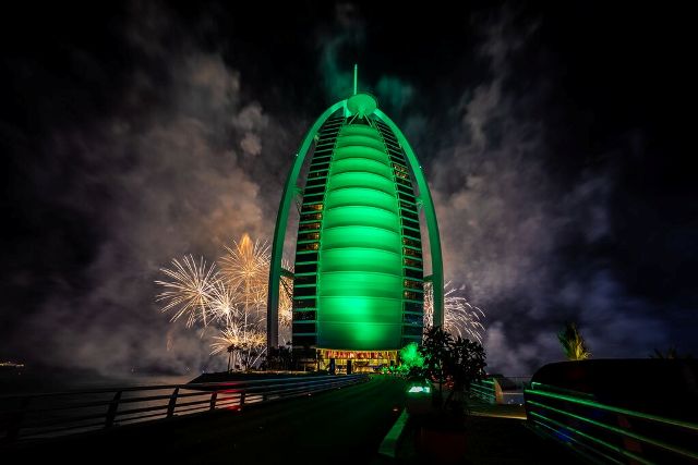 В новогоднюю ночь с террасы отеля Burj Al Arab можно будет наблюдать грандиозные фейерверки, а ресторан Bull & Bear с видом на Burj Khalifa перенесет посетителей в Нью-Йорк 1920х годов, предлагая провести новогоднее торжество в стиле Великого Гэтсби. Для лучшего вида на самый зрелищный салют, который запускают прямо с Бурдж-Халифы, гости могут забронировать столик в любом ресторане на бульваре Шейха Мохаммеда бин Рашида или отправиться в торговый центр Dubai Mall.