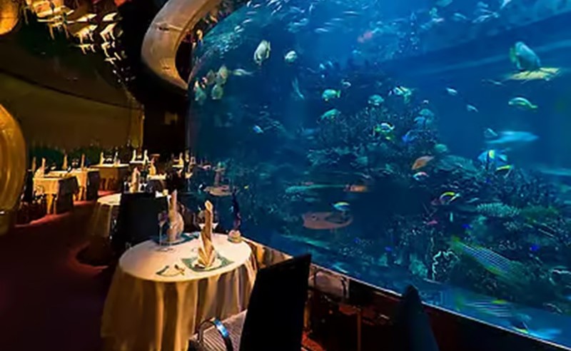 4. Ресторан «под водой» – на самом деле иллюзия. Гости годами верили, что ужинают на дне залива. На самом деле зал окружен аквариумом объемом около миллиона литров воды. Толстые акриловые панели и искусственные кораллы создают полное ощущение погружения.