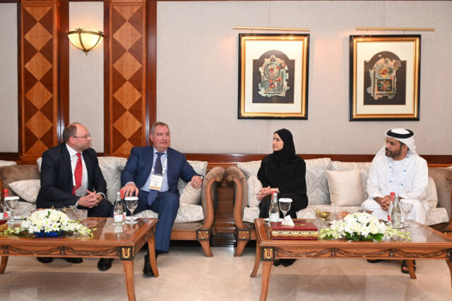 Межправительственное соглашение о сотрудничестве в области исследования и использования космического пространства в мирных целях подписали государственный министр по передовым технологиям и председатели космического агентства ОАЭ Сара бинт Юсиф Аль Амири и генеральный директор Российского федерального космического агентства (Роскосмос) Дмитрий Рогозин.