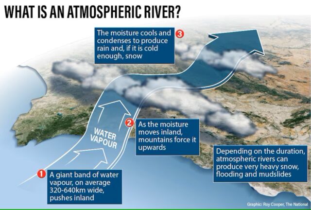 По данным Геологической службы США, атмосферные реки высокой интенсивности могут быть такими же смертоносными, как ураганы.