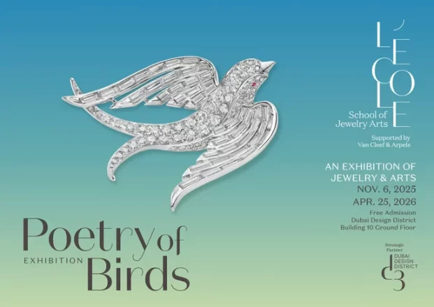 Выставка, посвященная символике птиц в искусстве, поэзии и ювелирном деле. Курируемая L’ÉCOLE Middle East, она раскрывает связь между западной ювелирной традицией XIX–XX веков и исламским искусством через образы птиц и их поэтические интерпретации.