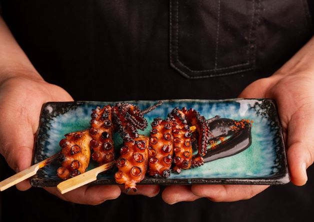 Впечатления продолжаются с одним из самых знаковых ритуалов ресторана – приготовлением блюд на открытом огне. Из огня появляются такие фирменные блюда, как якитори, глазированные соусом таре с баба ганушем, такошияки с осьминогами из Фримантла, хариссой и соусом таре, вагю A5 с соусом таре и васаби. Меню дополнительно обогащается специальными предложениями ресторана, включая ставшую знаменитой – лазанью с гёдза.
