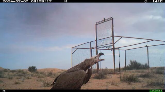 В конце 2023 года защитники природы установили в центре заповедника большую клетку, вокруг которой разбросали туши. Цель состояла в том, чтобы заманить этих осторожных птиц в клетку и оснастить их GPS-трекерами и другими метками. Это долгий процесс, требующий большого терпения, но он приближается к успеху.