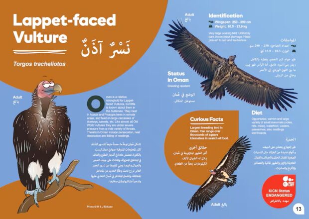 Хотя лапчатые стервятники вымерли на большей части территории Ближнего Востока и Северной Африки, их все еще можно встретить в нескольких странах Аравийского залива. Кроме того, что они малозаметны, они также являются загадочным явлением в заповеднике: никто точно не знает, откуда они прилетают каждый день и куда улетают.