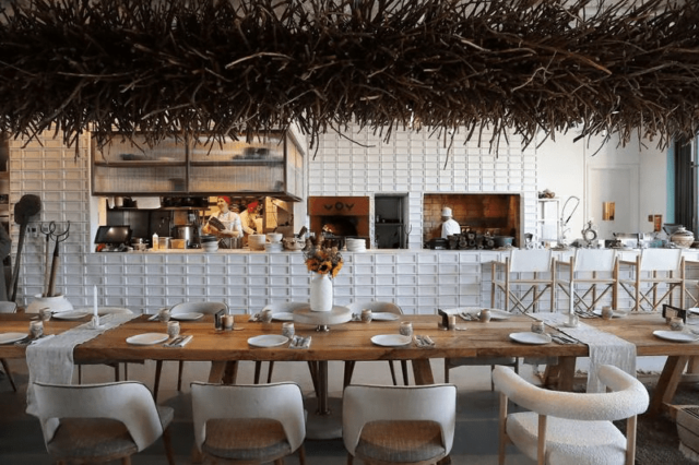 В ресторане есть множество деталей, напоминающих людям о доме, например, 13-метровый стол из украинского дерева, украшенный гигантским гнездом аиста ручной работы.