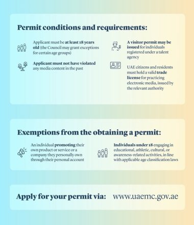 С 1 августа, любой, кто будет публиковать рекламный контент, платный или бесплатный, должен будет получить официальное «разрешение рекламодателя» (advertiser permit) от Совета по СМИ ОАЭ (UAE Media Council).