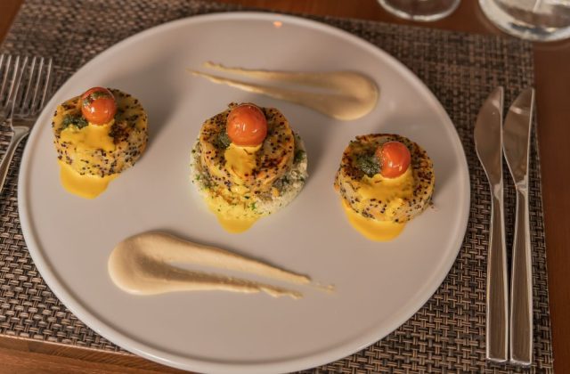 Галета из киноа и джекфрута с кокосово-шафрановым соусом