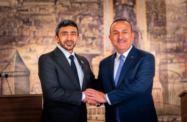 Шейх Абдулла также встретился с министром иностранных дел Турции Мевлютом Чавушоглу. В ходе встречи были обсуждены итоги государственного визита Эрдогана в ОАЭ в феврале. Турция и Объединенные Арабские Эмираты вступили в новую эру в двусторонних отношениях. Об этом заявил в пятницу глава МИД Турции Мевлют Чавушоглу на совместной пресс-конференции с коллегой из ОАЭ Абдуллой бин Заидом Аль Нахайяном в Стамбуле, сообщает издание Anadolu.