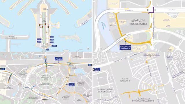 Изображения планов, опубликованных пресс-службой правительства Дубая, показывают такие улучшения, как дополнительные пешеходные мосты на стволе Palm Jumeirah, дополнительные дороги в Business Bay возле Bay Square плюс пешеходные мосты, новые дороги, мосты, мосты второго уровня и подземные переходы в JVC, а также дополнительные дороги в International City 2.